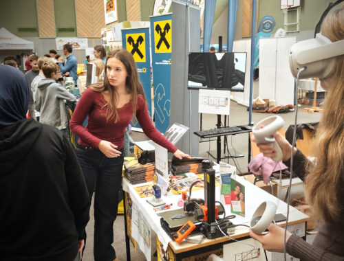 Ein engagiertes Team aus Lehrer:innen und Schüler:innen präsentierte das vielfältige Angebot und die zahlreichen Möglichkeiten unseres Gymnasiums. Besonders großes Interesse weckten unsere VR-Brille und der 3D-Drucker, die eindrucksvoll zeigten, wie moderne Technologien bei uns im Unterricht eingesetzt werden.