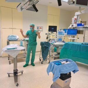 Ein besonderes Highlight war das Beisein bei einer Sectio caesarea (Kaiserschnitt) sowie die Anfertigung einer Knie-Endoprothese. Dabei wurde uns deutlich, wie entscheidend ein eingespieltes Team für den reibungslosen Ablauf in der Chirurgie ist. Besonders beeindruckend war für uns, dass für Notfälle, wie eine dringende Sectio, jederzeit ein OP vollständig vorbereitet bereitsteht und eine OP nach nur wenigen Sekunden nach Eintreffen des/der Patient:in starten kann.