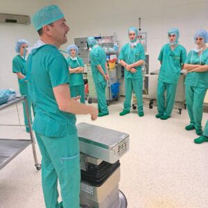 Empfangen wurden wir von Herrn Franz Ganser, der die Leitung des OP-Bereichs innehat. Nach einer spannenden Einführung in den sterilen OP-Bereich und einem Überblick über die dort durchgeführten Eingriffe durften wir hinter einer Glasscheibe live bei Operationen zusehen.