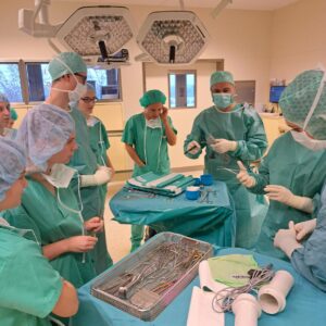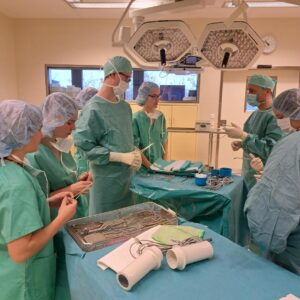 Neben dem Beobachten der Operationen durften wir chirurgische Instrumente kennenlernen und uns gegenseitig steril einkleiden. Dabei wurde uns bewusst, wie routiniert und präzise das Personal im OP-Bereich arbeitet.