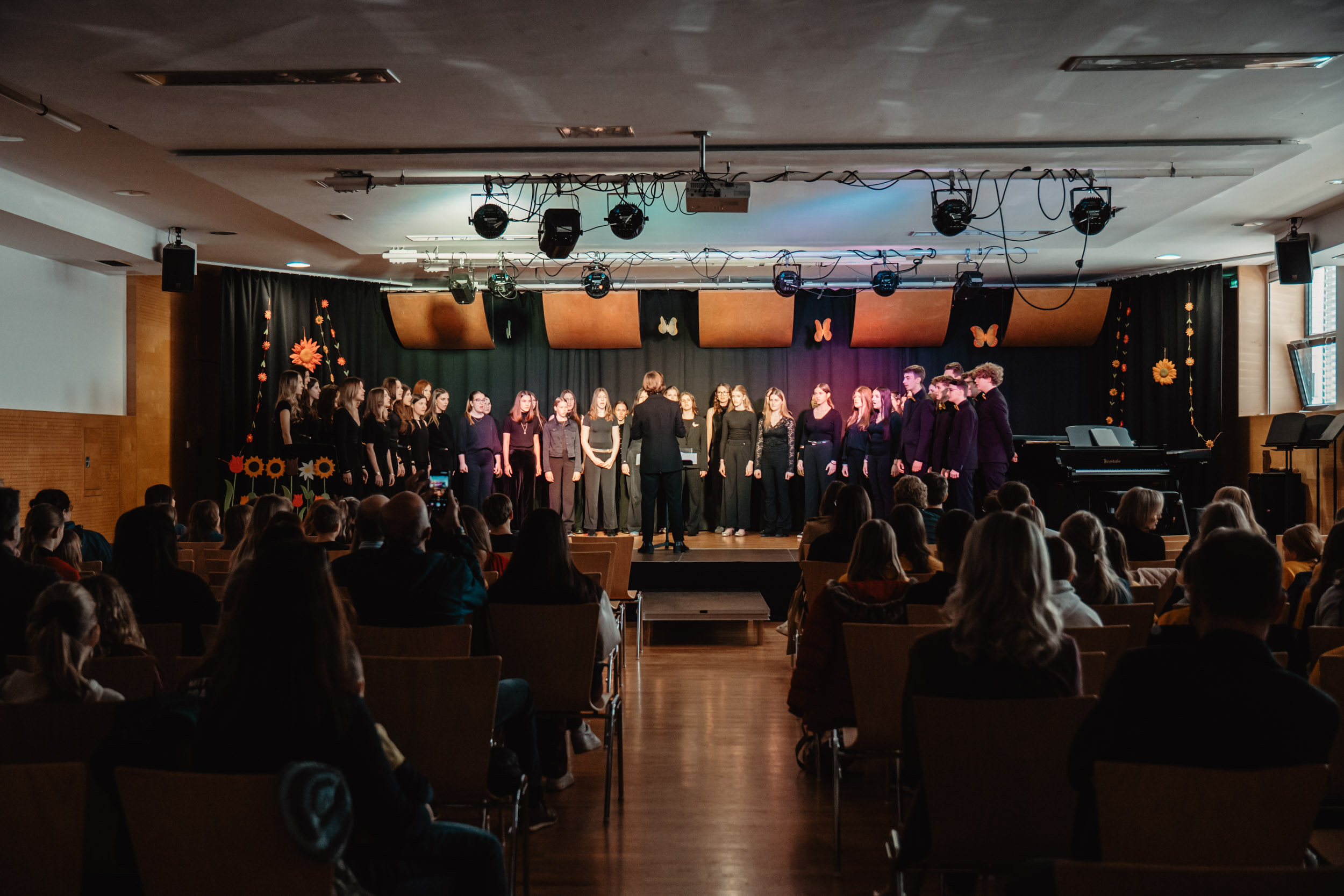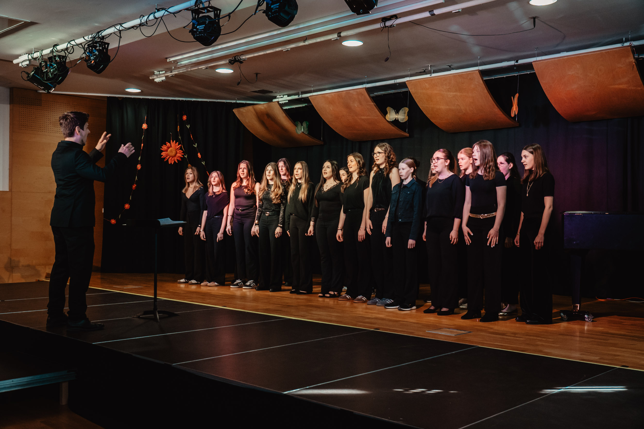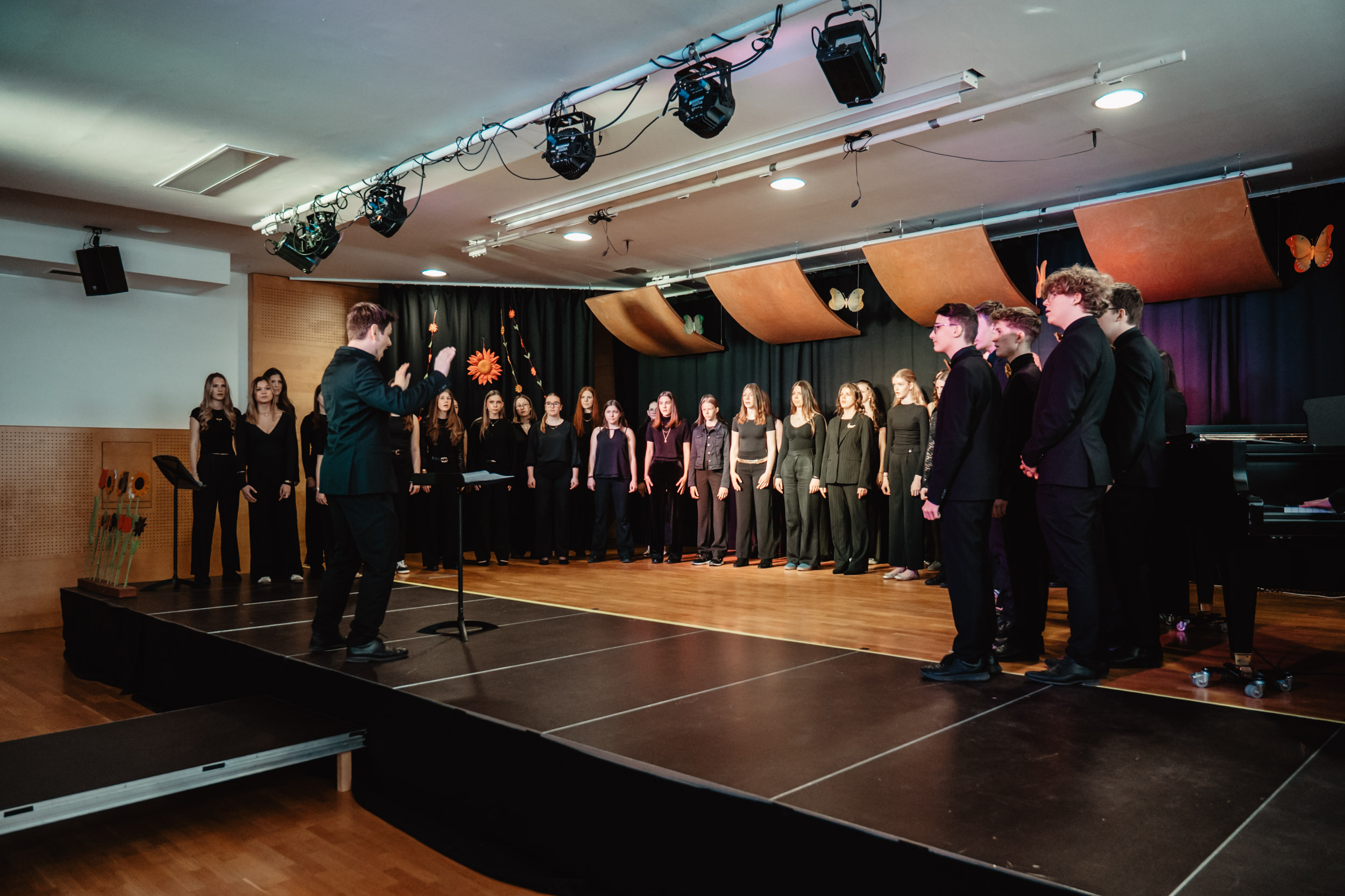 Mit großer Begeisterung nahmen zwei Chöre unseres Gymnasiums am 11. März 2026 am diesjährigen Bezirksjugendsingen in der MMS Hellmonsödt teil. Der Chor unseres Musikzweigs und die Formation „Girls Only“ präsentierten ein abwechslungsreiches Programm und zeigten dabei viel musikalisches Können und Freude am gemeinsamen Singen. Unter der Leitung von Stefan Kapeller und Maria Gidl überzeugten die Schülerinnen und Schüler mit sauberem Klang, guter Bühnenpräsenz und spürbarer Leidenschaft für die Musik. Das Publikum belohnte die Darbietung mit kräftigem Applaus.