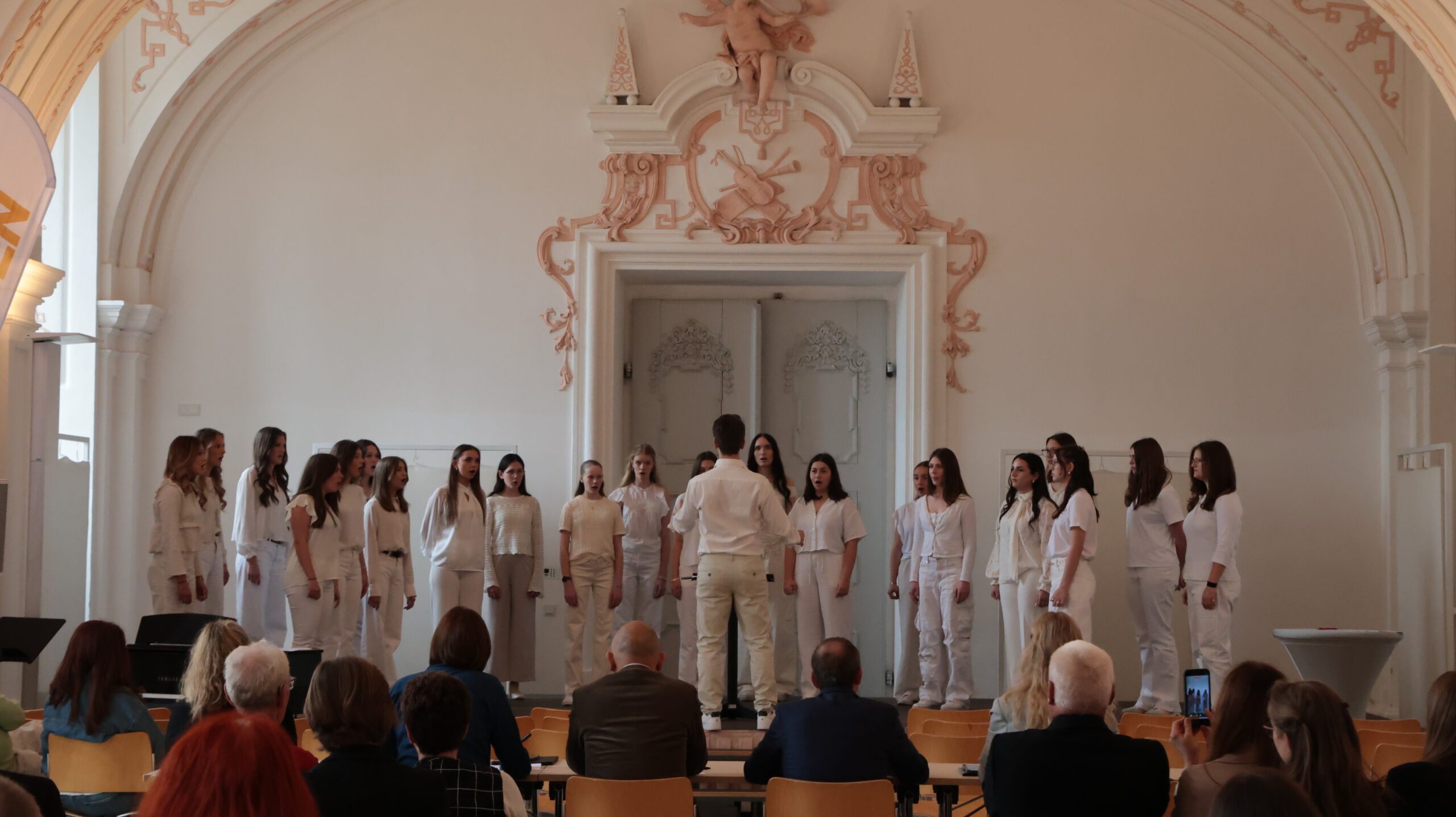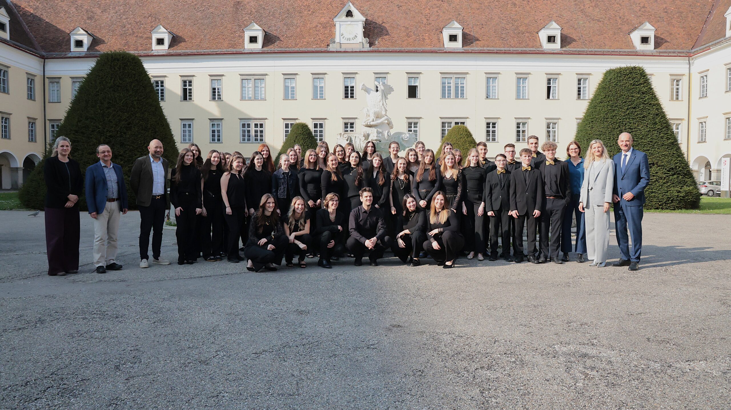 Besonders erfreulich war das Wiedersehen mit Absolvent:innen unseres Gymnasiums: Ehemalige Schüler:innen singen im Ensemble Cantus Scholares gemeinsam mit anderen Studierenden und traten unter der Leitung von Stefan Kapeller ebenfalls beim Bewerb an.